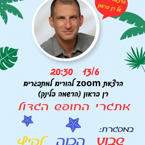 13 יוניהרצאה להורים למתבגרים - אתגרי החופש הגדולZOOM -