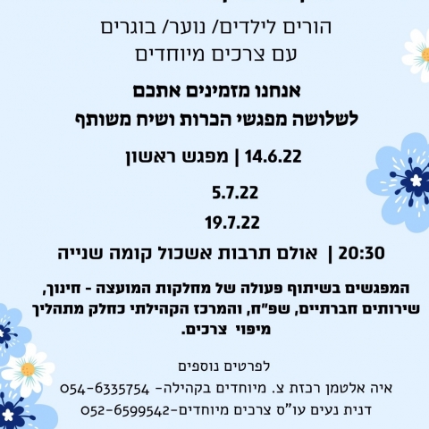 14 יוניכאן בונים קהילה מיוחדתאולם תרבות אשכול (קומה שניה) -
