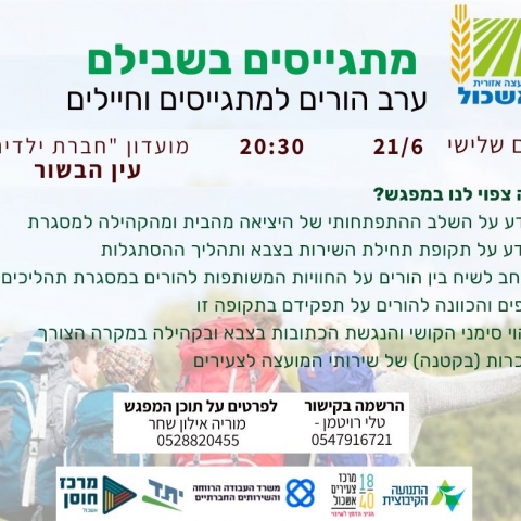 21 יונימתגייסים בשבילם - מפגש ייעודי להוריםמועדון "חברת ילדים" עין הבשור -