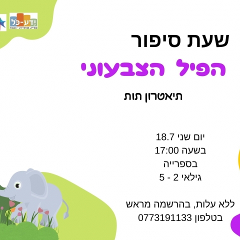 18 יולישעת סיפור - הפיל הצבעוניספריית ידע כל -