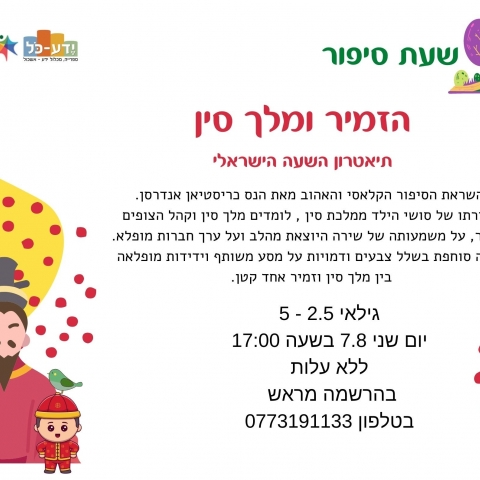 07 אוגוסטשעת סיפור - הזמיר ומלך סין עם תיאטרון השעה הישראליספריית ידע כל -