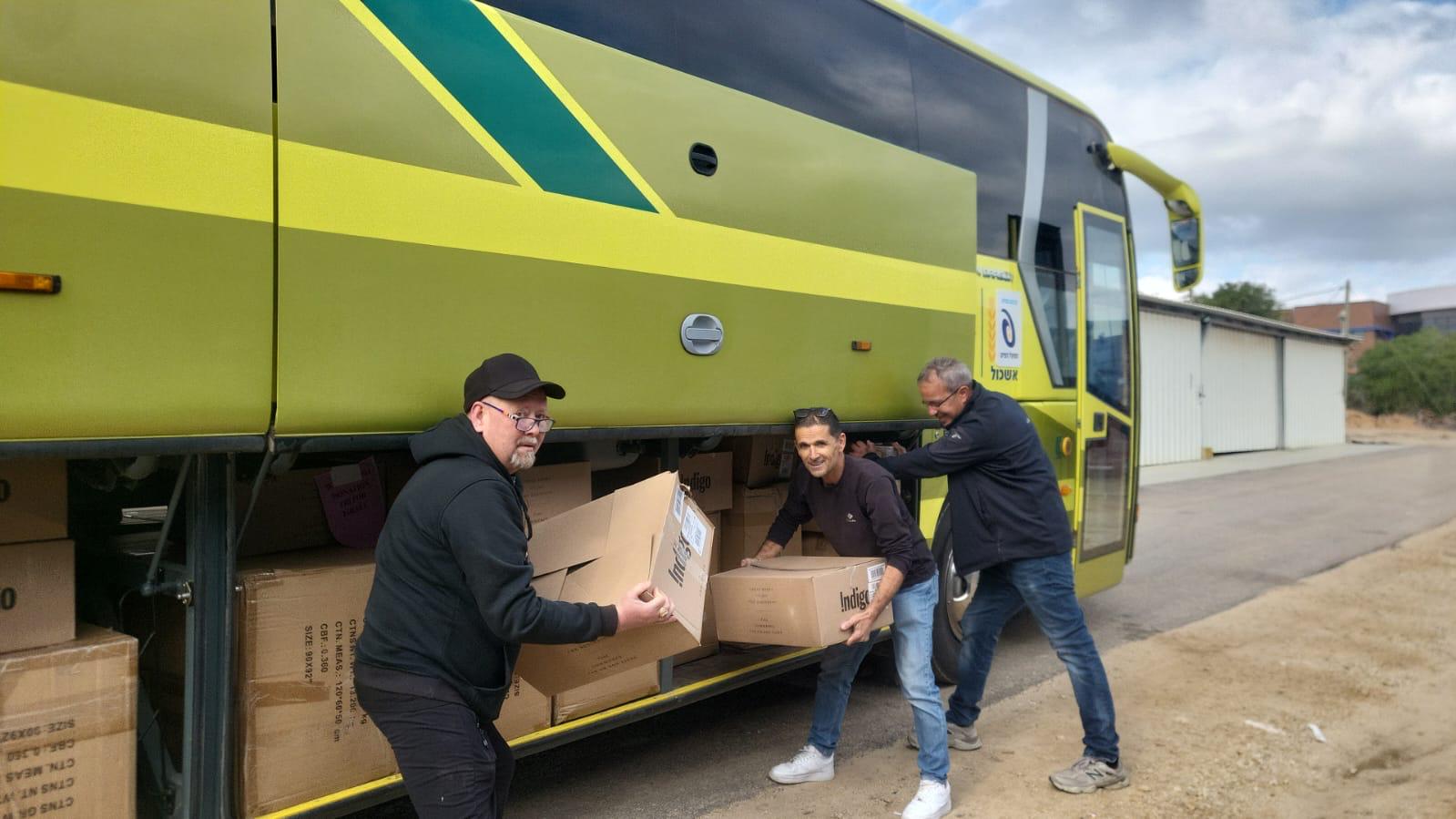 השבוע יצאו מאשכול אוטובוסים עמוסים בציוד בסיסי, בהם שמיכות, מצעים, מגבות ומשחקים לילדים – ציוד שנועד לאפשר התארגנות מיידית בתנאי חירום.