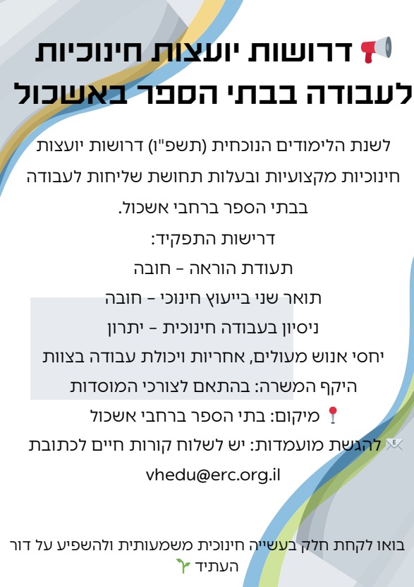 דרושות יועצות חינוכיות לעבודה בבתי הספר באשכול