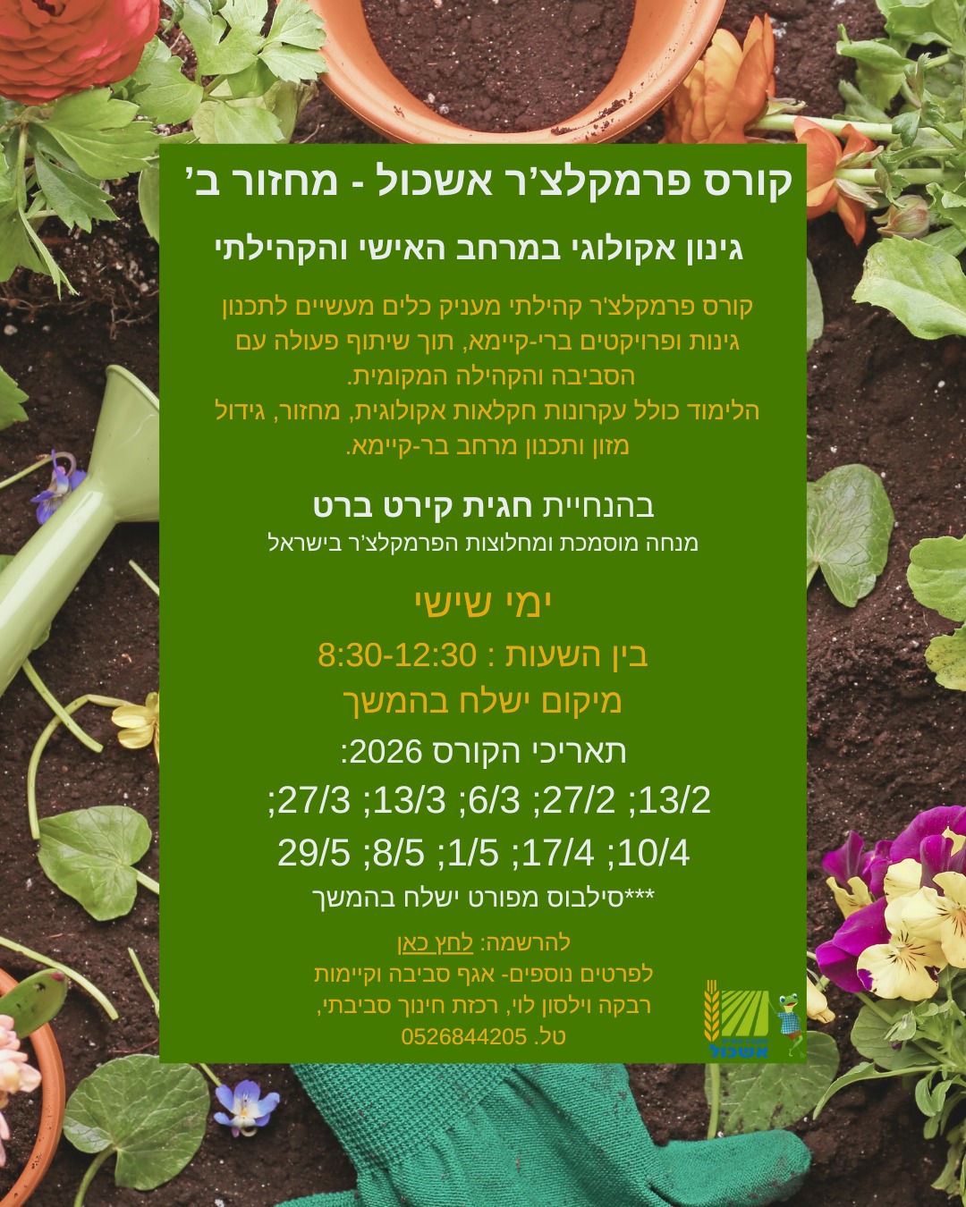 שמחה לבשר שההרשמה למחזור ב' לקורס פרמקלצ'ר החלה